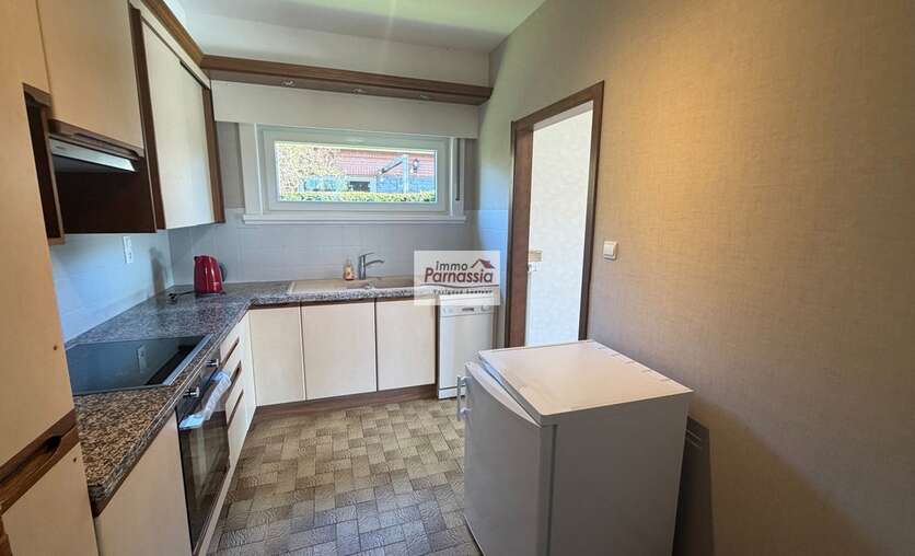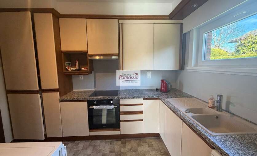 This thoroughly renovated bungalow is situated in a quiet residential street, close to NATO headquarters and public transport links. The property features a cosy living room with a fireplace (cassette), a fully fitted kitchen, three bedrooms, a bathroom with a shower and washbasins, and a separate toilet. It also features a single-car garage with an automatic door, a spacious utility room or storage area, and a pleasant garden with a lovely terrace adjoining the living room. Recently refurbished with a new shower in the bathroom and a new oven and extractor hood in the kitchen. The roof has also been replaced.
