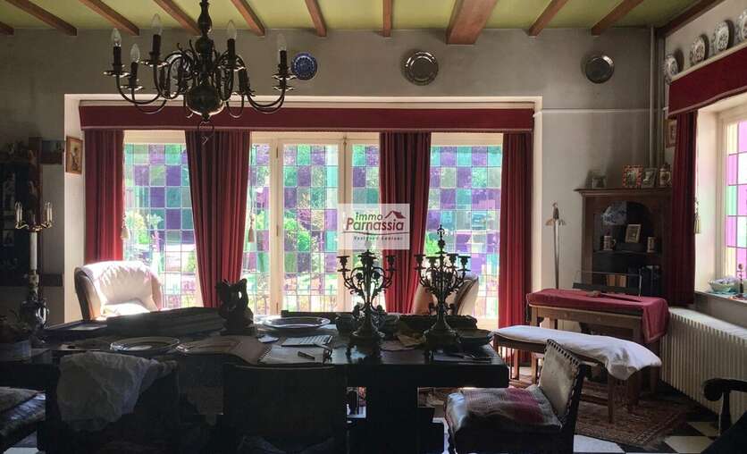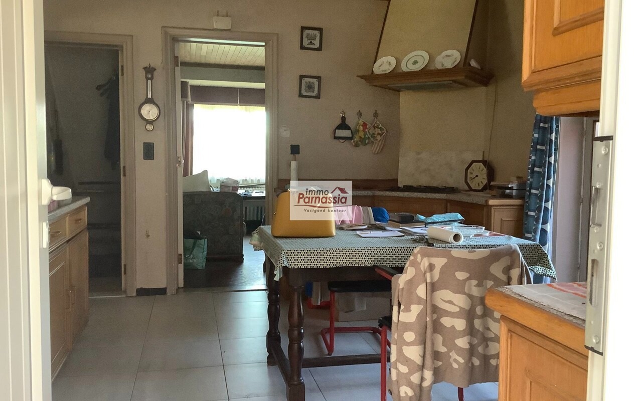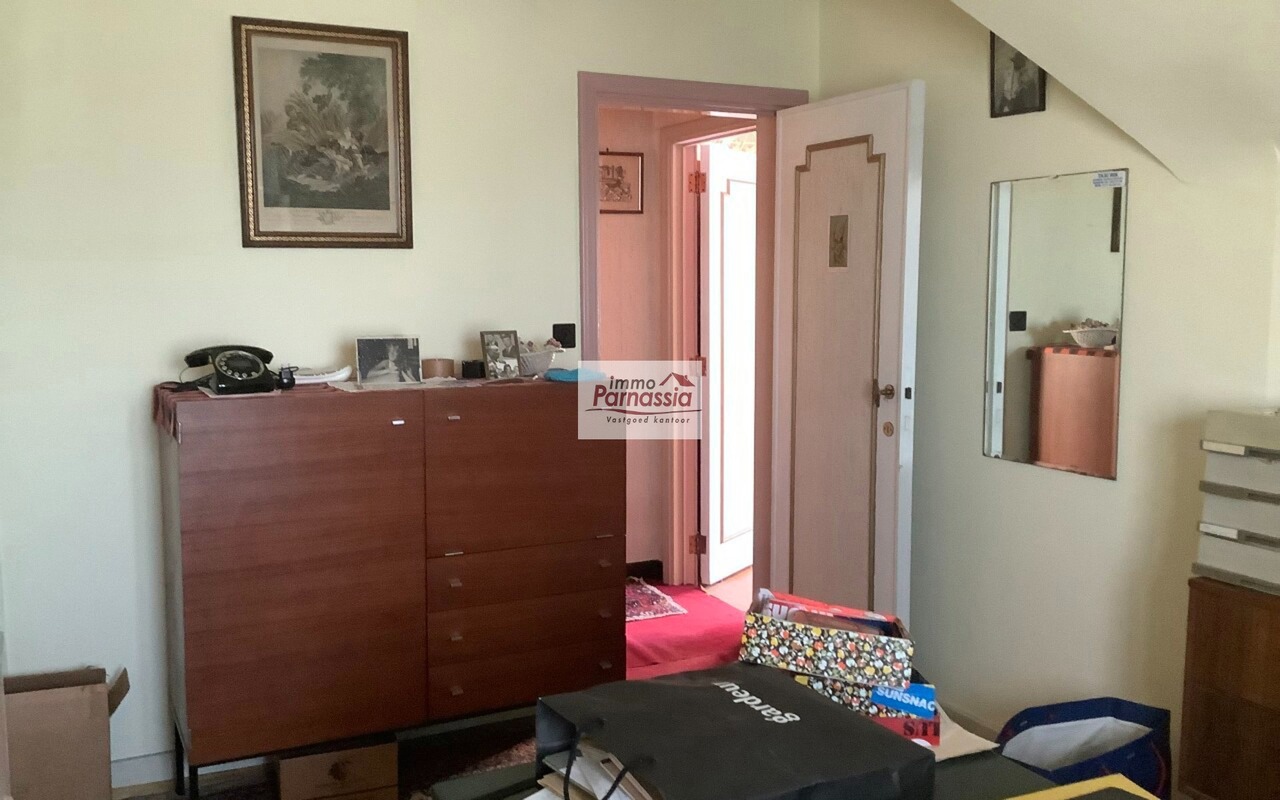 Ruime verplicht te renoveren villa uit 1957. Op het gelijkvloers bevinden zich een grote leefruimte (50 m²), een keuken (16 m²), een aparte toilet en één slaapkamer (19 m²). Op de bovenverdieping zijn er vier bijkomende slaapkamers (18 m², 12 m², 14 m² & 15 m²), een badkamer en een aparte toilet.