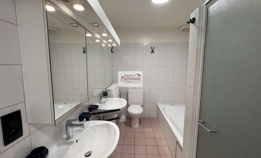Op de eerste verdieping : 3 ruime slaapkamers, badkamer met bad en douche, aparte wasruimte met aansluiting voor wasmachine/droogkast