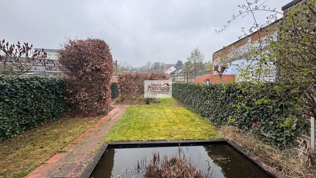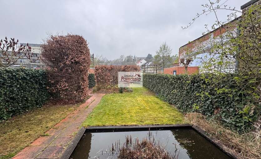Achteraan het huis is er een ruime aangelegde tuin met vijver en terras, een gesloten garage en parkingplaats.