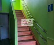 On the ground floor, there is an entrance hall, a hallway with stairs, a spacious room that can serve as a living room or practice room (former classroom), a kitchen and a separate room with two toilets. There is also a cellar and a pleasant courtyard.